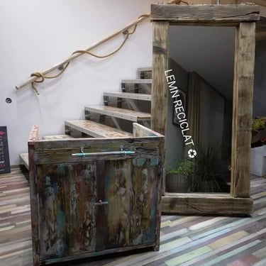 lemn reciclat, masiv, mobilier din lemn recuperat, oglinzi  logo